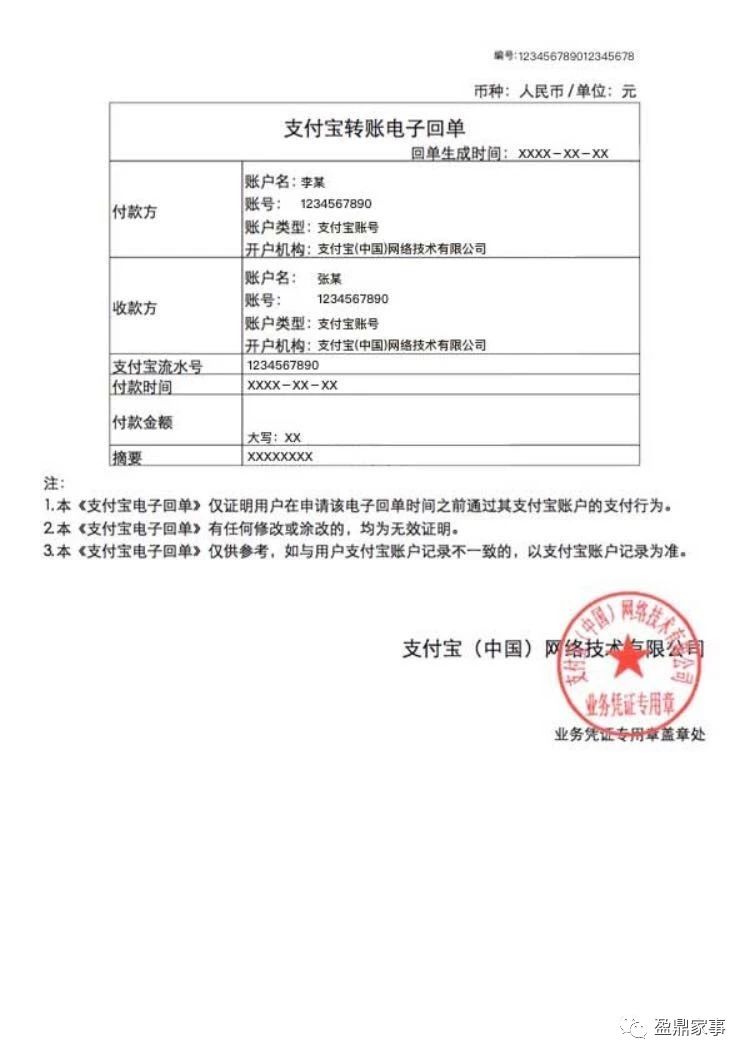 第五步:进入邮箱,PDF形式的电子回单即可生成,内容包含收、付款方姓名,支付宝号,账户类型,付款时间及金额等。