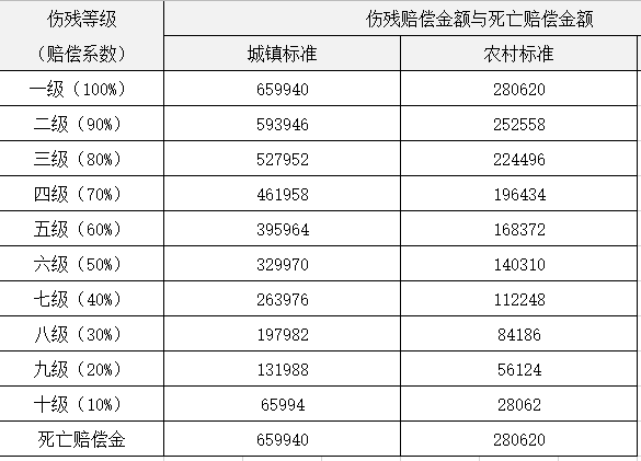 河北省2019年各级伤残城镇和农村赔偿数额标准如下: